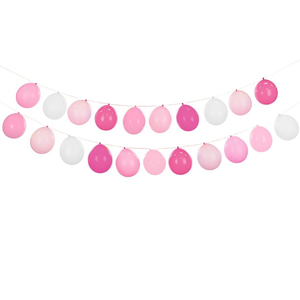 | Balónková girlanda obsahuje latexové balónky ve světle růžové, tmavší růžové a bílé barvě. Tato závěsná barevná balónková … |