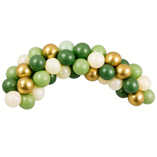 Stylová balónková girlanda v kombinaci zelených odstínů a zlatých akcentů, kterou snadno vytvoří i lidé bez dekoratérských znalostí. Ideální dekorace pro narozeniny, zahradní oslavy, svatby i elegantní tematické party.