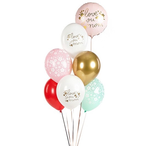 Silné latexové balónky s nápisem Love you Mom jsou krásným dárkem pro vaši maminku ke Dni matek, narozeninám či jiným příležitostem.