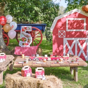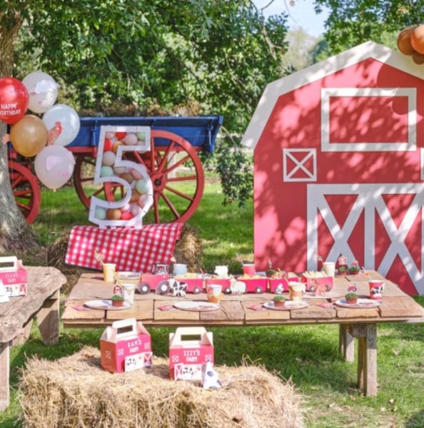 Vyzdobte dětem jejich farmářskou párty tímto pestrobarevným balónovým obloukem s roztomilými zvířátky ze statku.