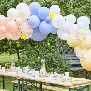 Balónkovou girlandu snadno připevníte na zeď, do prostoru na rám nebo kolem dveří. Skvělá výzdoba na narozeniny, baby shower, svatební párty, nebo zásnuby.