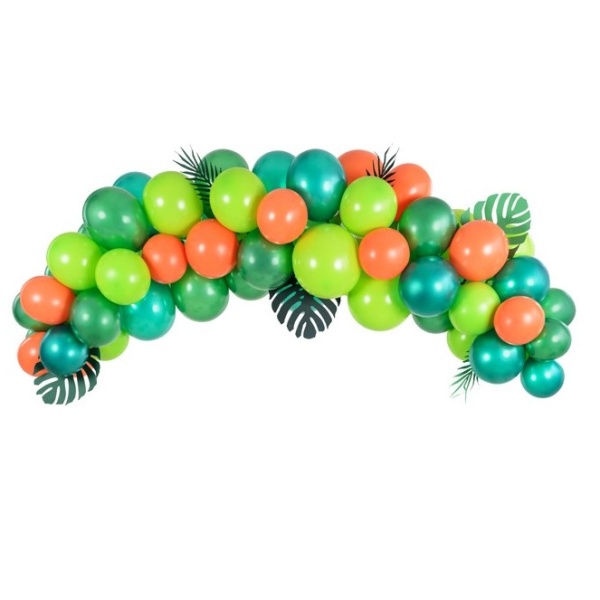 Sada obsahuje celkem 60 latexových balónků - 16 ks metalických v barvě zelené trávy, 17 ks pastelových v barvě zelená jablka, 14 ks metalických zelených a 13 pastelových oranžových a pásek přibližně 2,5 m pro balónkové girlandy.