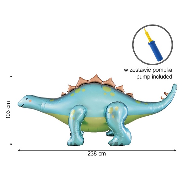 Extra velký fóliový balónek ve tvaru dinosaura druh Stegosaurus, který bude díky své velikosti a originalitě opravdu poutavou dekorací na oslavě narozenin, tématické párty v tématu dinosaurů nebo Jurského světa.