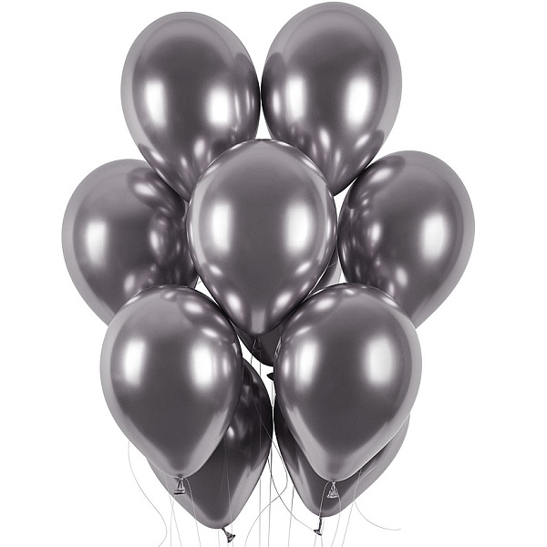 Balónek latexový chromové barvy v tmavě šedé barvě s vysokým leskem.