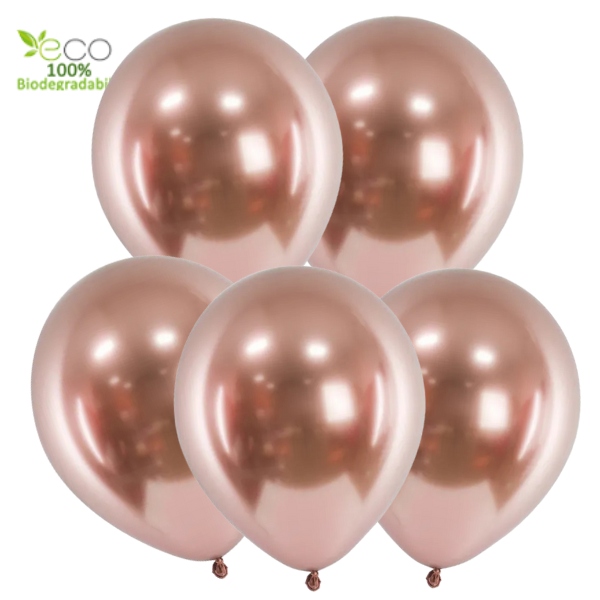 Latexové balónky s luxusním chromovým vzhledem v barvě rose gold – sada 5 ks - 30 cm