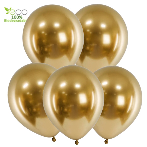 Latexové balónky s luxusním chromovým odstínem v barvě zlaté – sada 5 ks - 30 cm