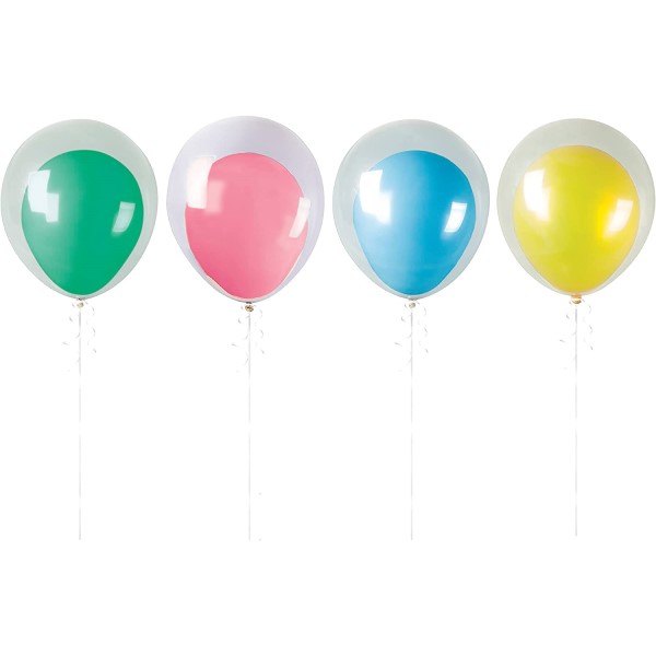 Balení obsahuje 12 ks průhledných balónků velikosti 30 cm a 12 ks neonových balónků velikosti 23 cm.