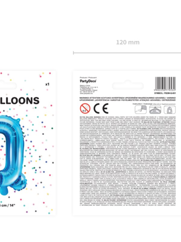 Balónek z metalické fólie Písmeno ''Q'', modrý, výška přibližně 35 cm (14'').