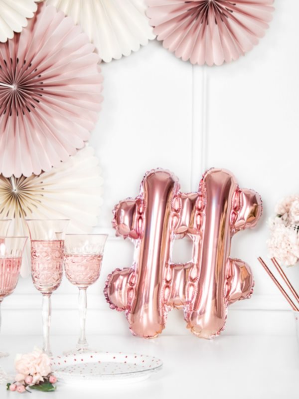 Balónek z metalické fólie č., růžově zlatý, výška cca 35 cm.