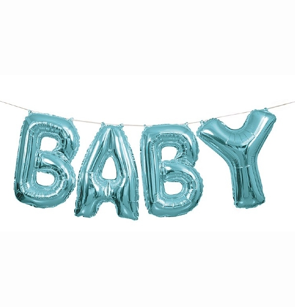 Balónkový nápis Baby modré barvy je skvělou dekorací pro oslavu narození chlapečka nebo Baby shower párty.