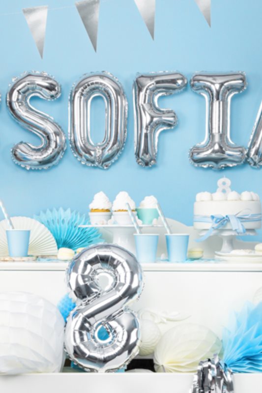 Balónek z metalické fólie č. 1, stříbrný, výška cca 35 cm.