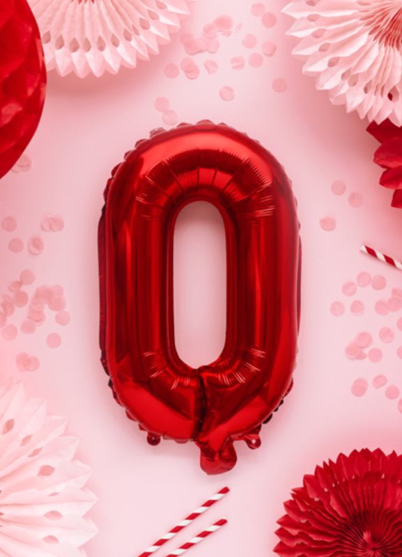 Metalický fóliový balónek Písmeno ''O'', červený, velikost před nafouknutím cca 40 cm, výška cca 35 cm. Nafoukněte vzduchem.