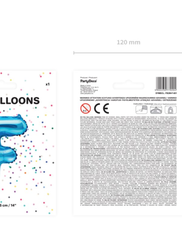 Balónek z metalické fólie Písmeno ''F'', modrý, výška přibližně 35 cm (14'').