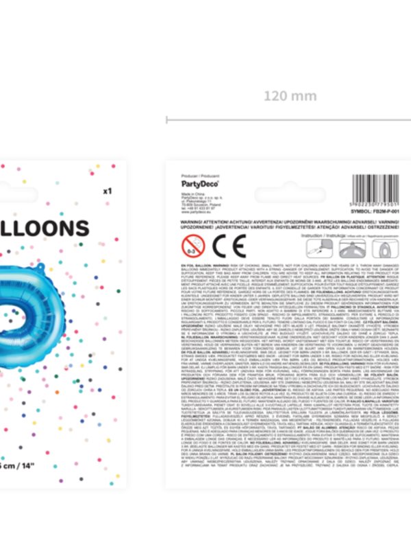 Balónek z metalické fólie Písmeno ''P'', modrý, výška přibližně 35 cm (14'').