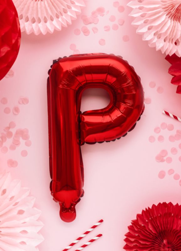 Metalický fóliový balónek Písmeno "P", červený, velikost před nafouknutím cca 40 cm, výška cca 35 cm. Nafoukněte vzduchem.