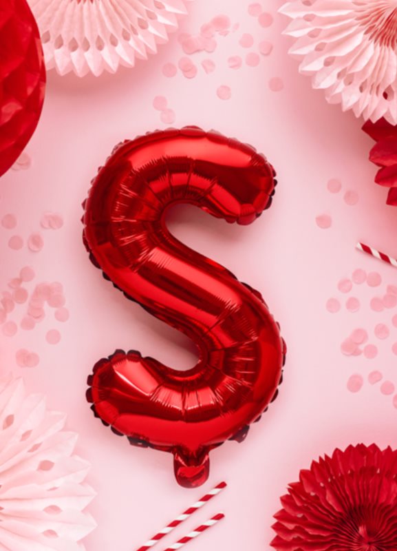 Metalický fóliový balónek Písmeno ''S'', červený, velikost před nafouknutím cca 40 cm, výška cca 35 cm. Nafoukněte vzduchem.