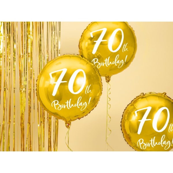 Fóliový balónek ve zlaté barvě k životnímu jubileu 70.narozenin s bílým nápisem.