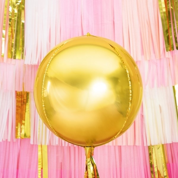 Tento velký fóliový balonek ve tvaru koule ve zlaté barvě je skutečným poutačem každé party.