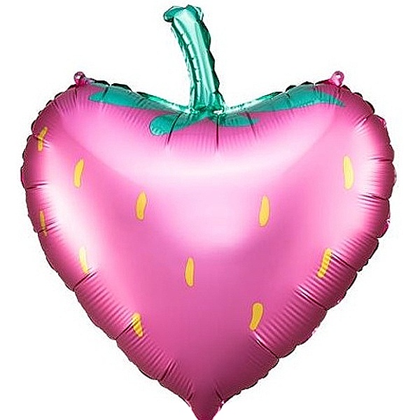 Balónek Jahoda je vyrobený ze saténové fólie se zlatým metalickým potiskem.