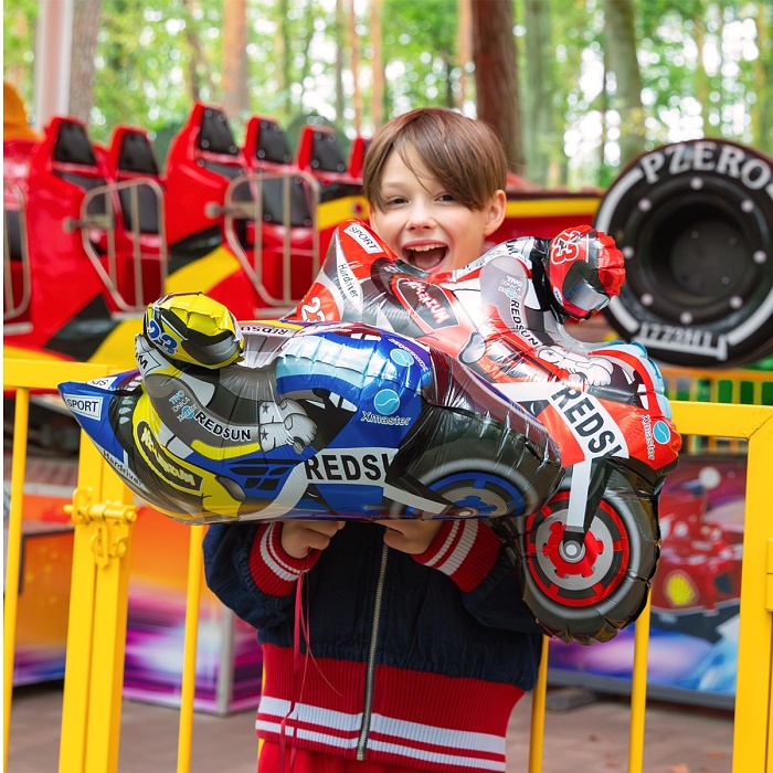 Fóliový balónek ve tvaru závodního motocyklu je skutečným hitem. Jeho zářivý červenobílý design dokonale zachycuje adrenalinový nával na dvou kolech.