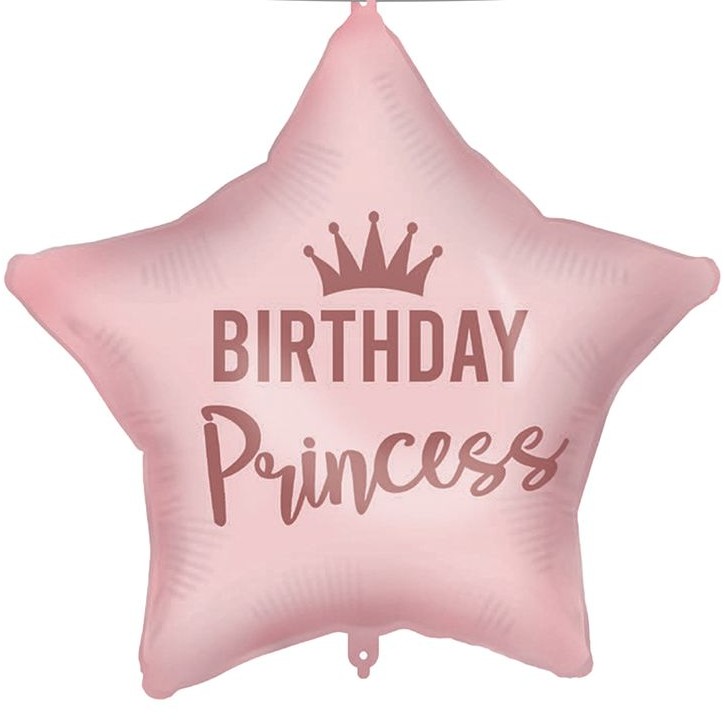 Narozeninový fóliový balónek ve tvaru růžové hvězdy s nápisem Birthday Princess