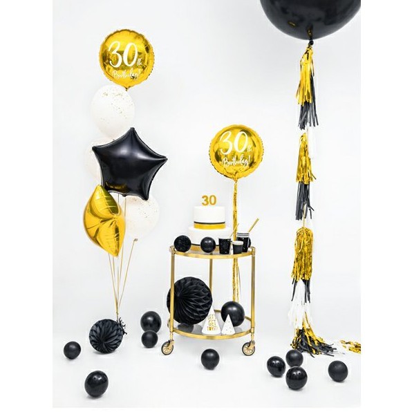 Černý fóliový balónek ve tvaru hvězdy pro výrazný a elegantní akcent.