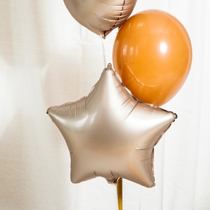 Vaše párty ve zlaté barvě může být zářivá a multicolor. Z hvězdiček, nafouknutých héliem, můžete vytvořit pestrou hvězdnou létající kytici, kterou oslavenci uvážete na balónkové těžítko.