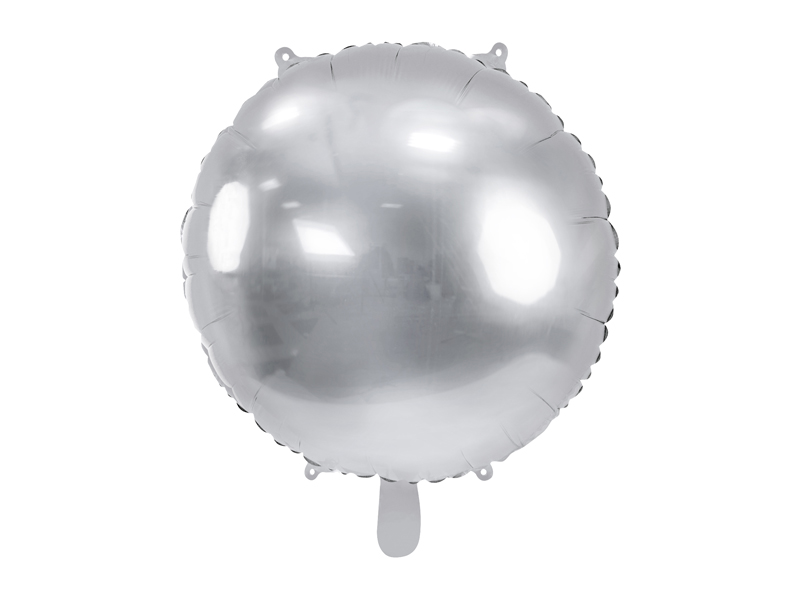 Zrcadlový kulatý balónek ve stříbrné barvě, velikost před nafouknutím cca 59 cm, velikost po nafouknutí cca 44 cm. Nafoukněte vzduchem a heliem. Sada obsahuje brčko.