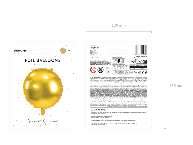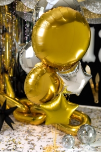 Zrcadlový kulatý balónek ve zlaté barvě, velikost před nafouknutím cca 45 cm, velikost po nafouknutí cca 35 cm. Nafoukněte vzduchem. Sada obsahuje brčko.