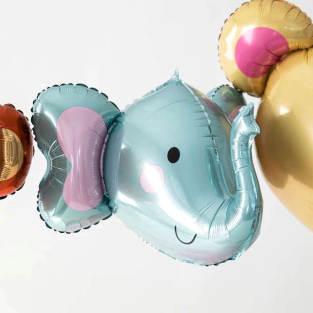 Velký balónek ve tvaru hlavy slona je s jasně odstávajícíma ušima a chobotem.