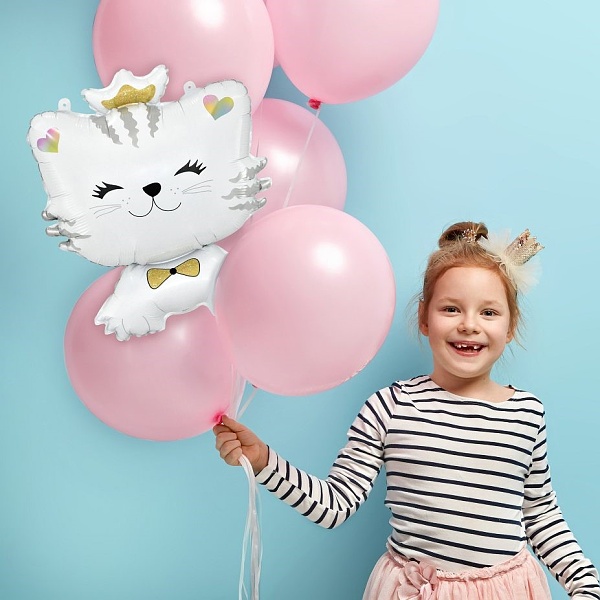 Pokud hledáte originální dárek k narozeninám pro dívku, pak je tento velký fóliový balónek ve tvaru bílého usměvavého koťátka tou nejlepší volbou. Bude také skvěle vypadat spolu s jinými balónky v balónkové kytici.