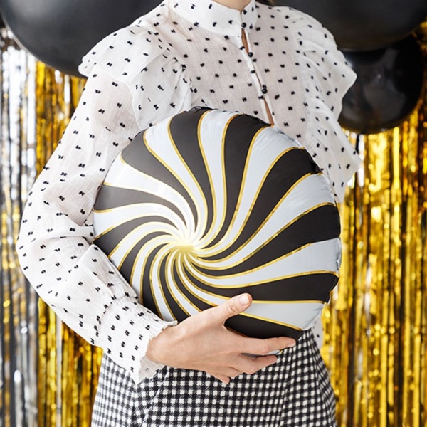 Balónek je vyroben z vysoce kvalitní černé fólie. Díky charakteristickému uspořádání pruhů vypadá balón jako bonbón