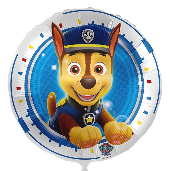 Balónek fóliový kulatého tvaru s oblíbeným Chasem ze známé Tlapkové patroly nesmí chybět jako doplněk výzdoby dětské párty v tomto tématu.