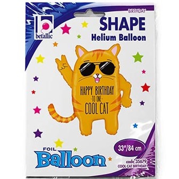 Foliový balónek ve tvaru kočky s nápisem "Happy Birthday Cool Cat".