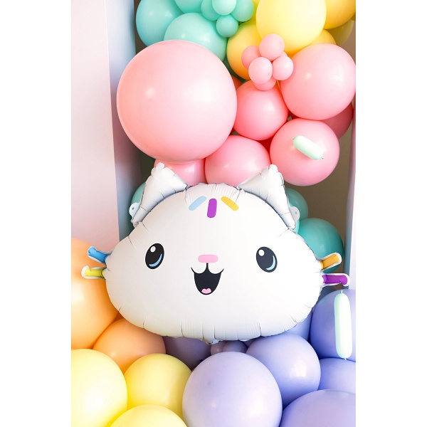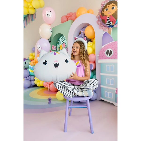 Tento jedinečný balónek ve tvaru roztomilého nadýchaného obláčku s kočičími oušky a barevnými doplňky potěší každé dítě a dodá kouzlo každou malou fanynku Gabby's Dollhouse.