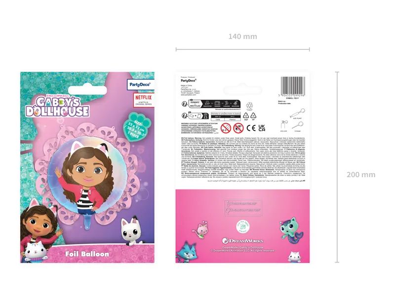 Fóliový balónek s volánem, Gabiin kočičí domeček, 52x52 cm, mix