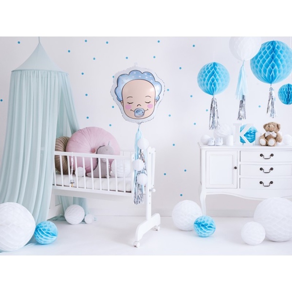Matný fóliový balónek je světle modré barvy a skvěle vám ozdobí tématickou párty baby shower, oslavu při narození