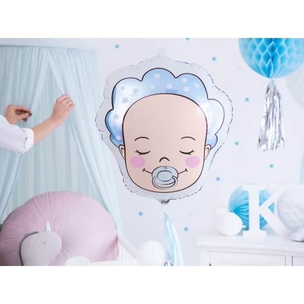 Cukrově sladký a kouzelný fóliový balónek ve tvaru dětské tvářičky chlapečka.