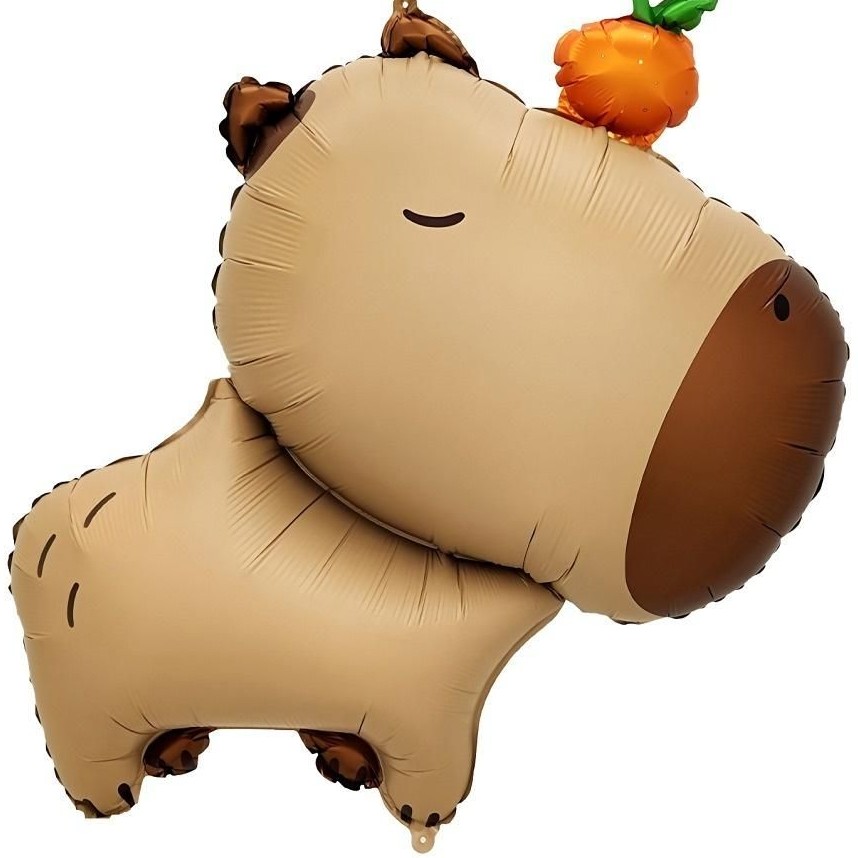 Fóliový balónek s motivem kapybary s pomerančem to je perfektní doplněk na každou párty.