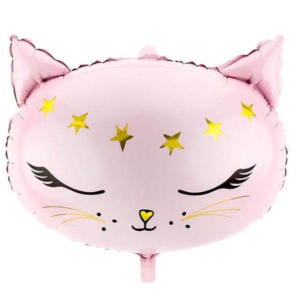 Balónek fóliový růžová Kočička se zlatými hvězdičkami na čele je skvělý balón pro vaši kočičí párty!