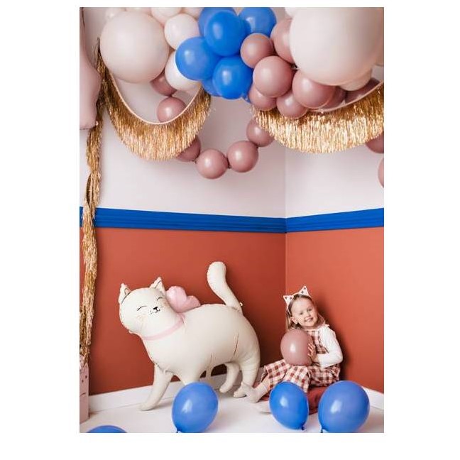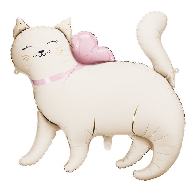 Krémově zbarvený fóliový balónek ve tvaru kočičky s růžovou mašlí kolem krku a ve tvaru srdce skvěle doplní tematickou dekoraci.