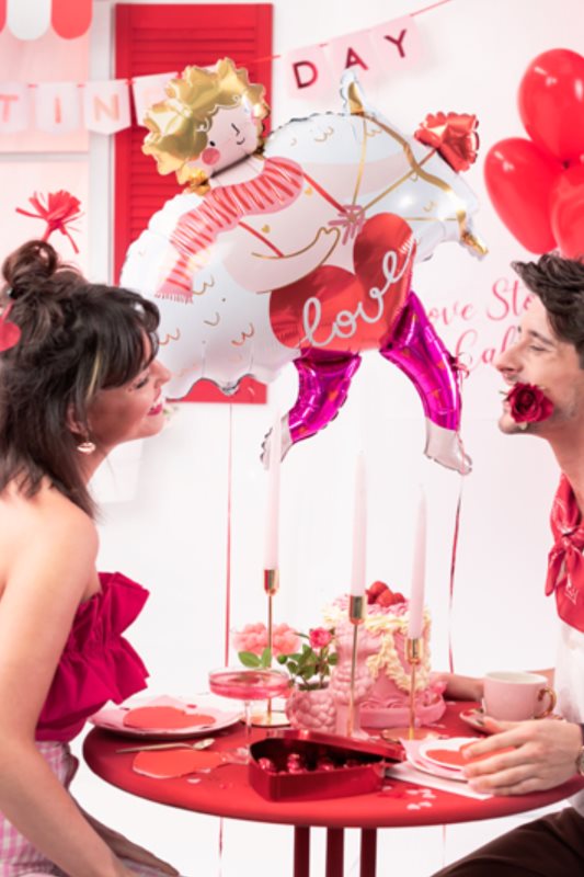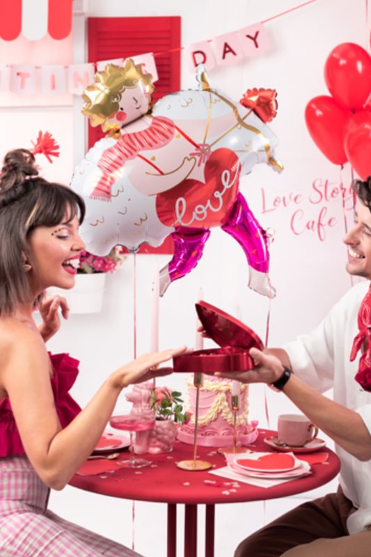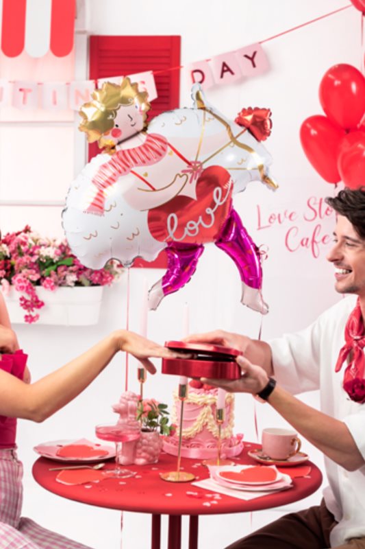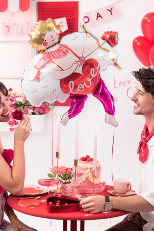 Fóliový balónek Amor, mix barev, velikost před nafouknutím cca 82 x 99 cm (32 x 34''), velikost po nafouknutí 67 x 77 cm (26 x 30''). Nafoukněte vzduchem a heliem. Sada obsahuje brčko.