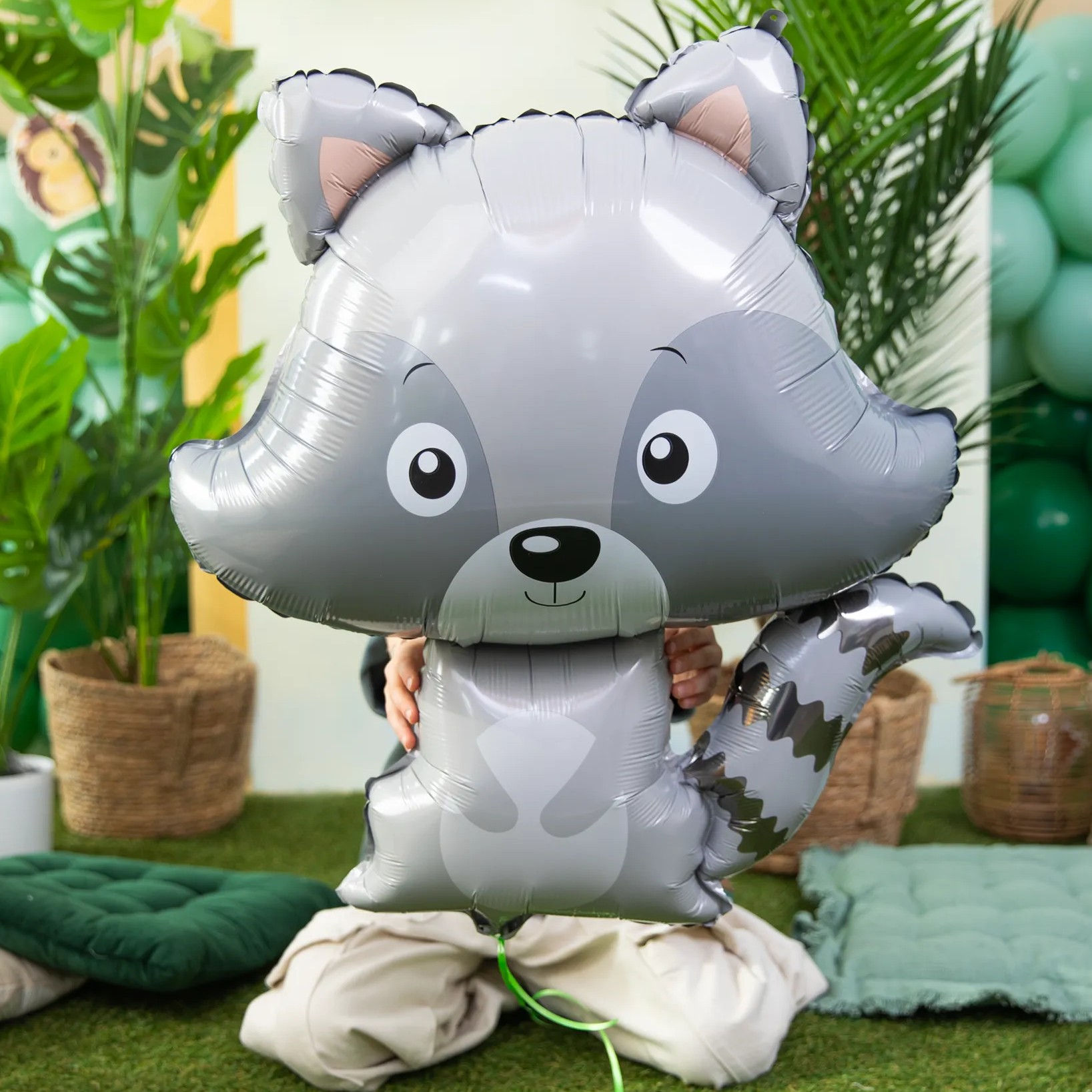 Krásný a velký balónek ve tvaru veselého mývala, který je nezbytností na dětské párty.