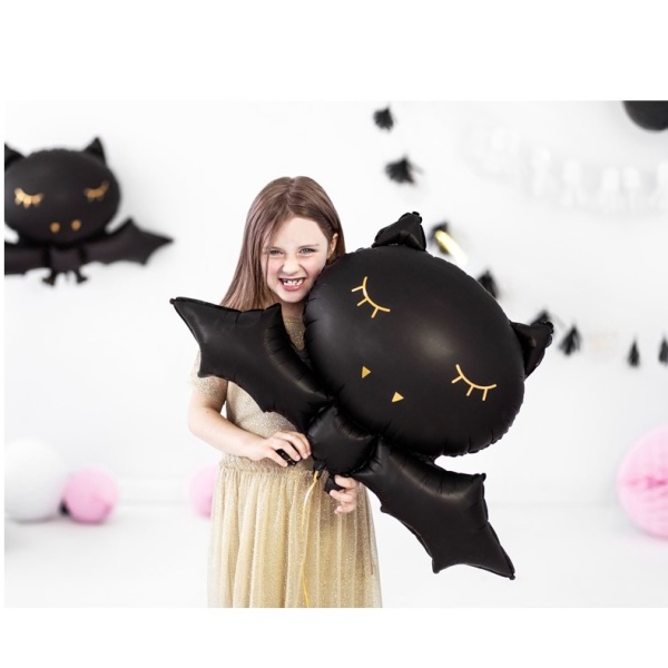 Černý fóliový balónek ve tvaru netopýra je ten pravý doplněk na dětskou halloweenskou párty nebo čarodějnice.