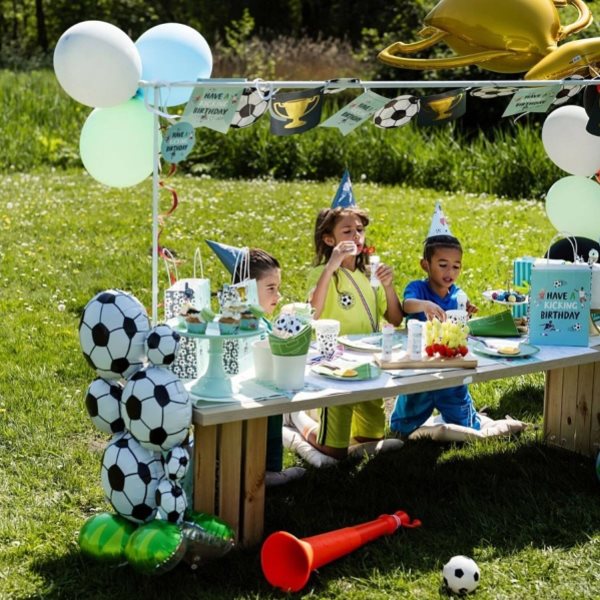 Tato samostojná balónková kompozice fotbalových míčů dodá sportovní atmosféru na fotbalové párty.