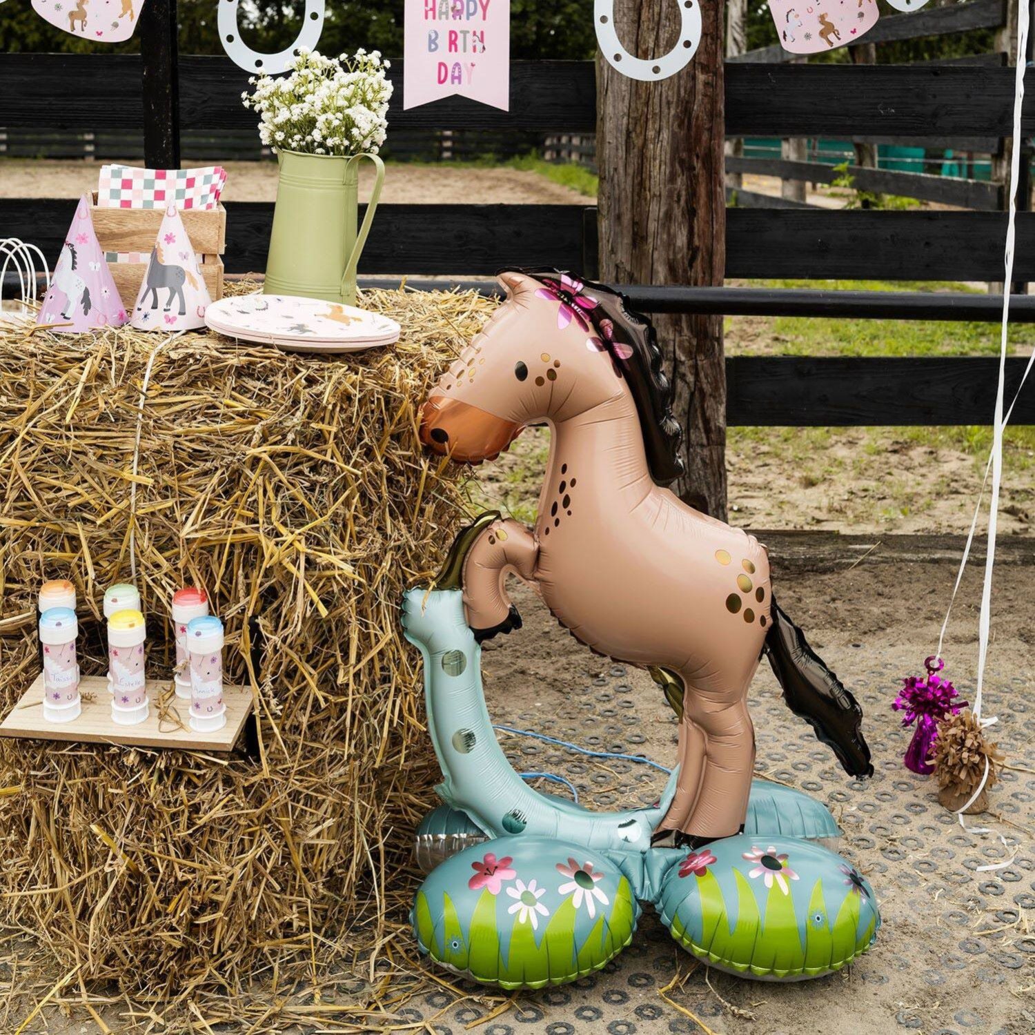 Jeho velikost z něj činí poutavý prvek při vstupu na oslavu, zatímco propracované detaily jako je výrazná hříva, poutka za uši a zvednutá hlava dodávají dekoraci realistický charakter.
