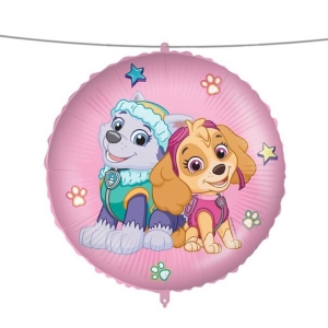 Fóliový balónek kulatého tvaru s potiskem postaviček Skye a Everest z oblíbené Tlapkové Patroly