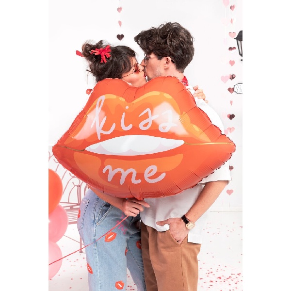 Originální fóliový balónek Ústa s nápisem Kiss me