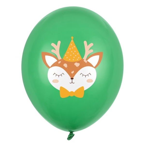 Silné latexové balónky v zelené pastelové barvě s potiskem hlavy Jelena s čepičkou s motýlkem u krku.