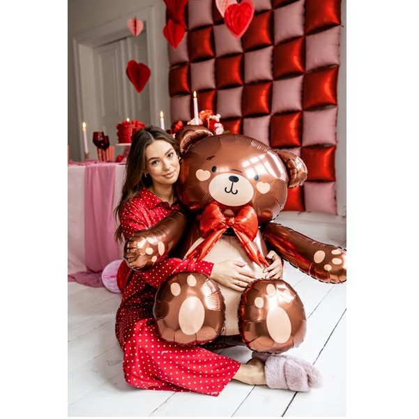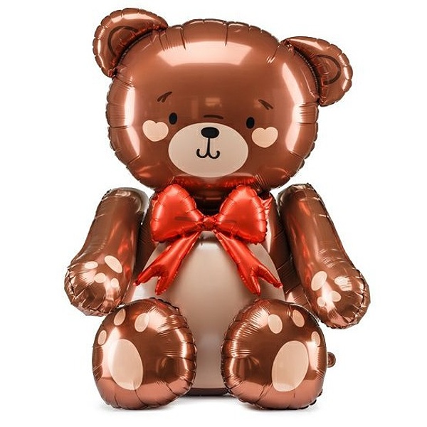Sedící fóliový balónek v podobě hnědého medvídka s červenou mašlí je opravdový bestseller.